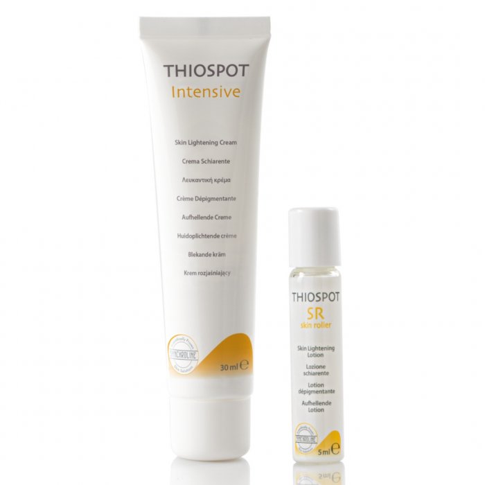Apply the Thiospot® Intensive Cream to large pigmented areas in the morning and evening, and use the Thiospot® Skin Roller for smaller, more intense spots. For best results, allow 4 to 8 weeks for the active ingredients to build up in the skin. Continue use until the old, darker skin cells are naturally shed and replaced with lighter ones. Thiospot® can also be used alongside other similar treatments, such as mild exfoliating cleansers and Vitamin C products.